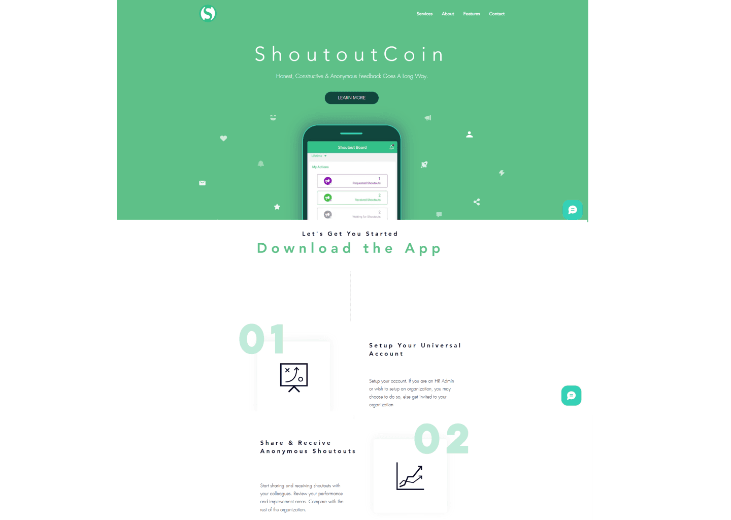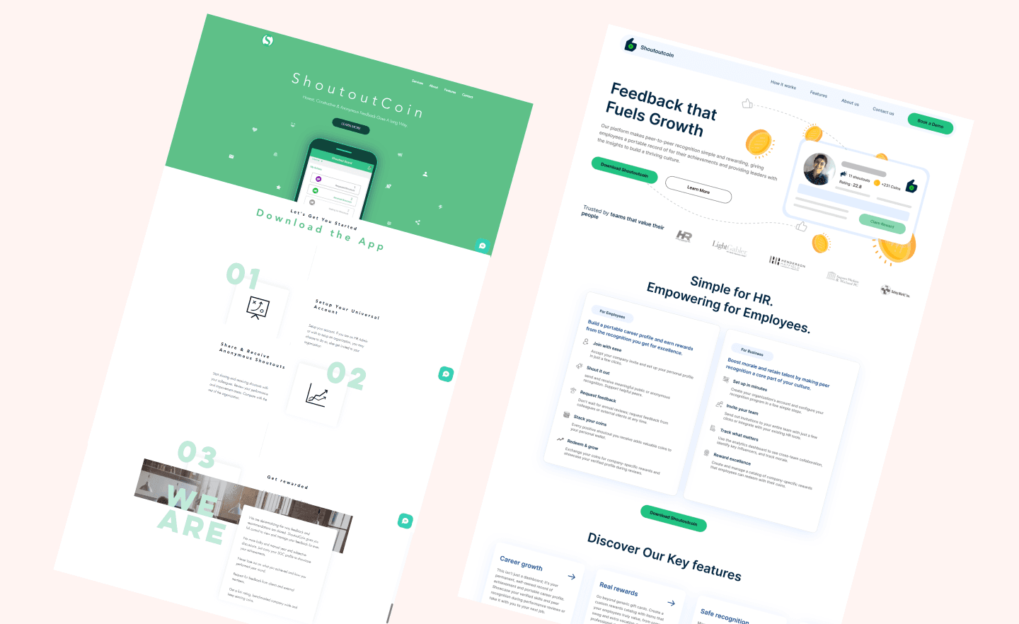 The existing ShoutOutCoin website relied heavily on a single shade of green, resulting in a flat and tiring visual experience. The brand also lacked a distinctive identity — the logo, typography, and layout didn’t communicate trust, clarity, or modernity, which is critical for a workplace product.